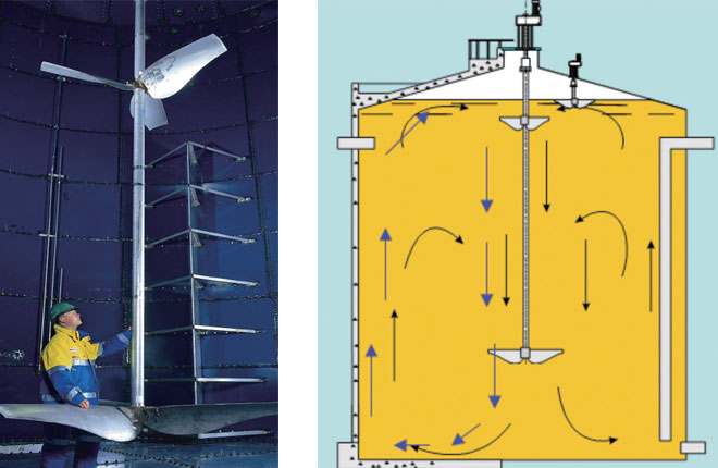 顶部安装的立轴式搅拌器,可用于厌氧搅拌、加药混合、均质等用途,适用领域有餐厨垃圾、生活垃圾、市政污泥、工业废水废渣的处理。