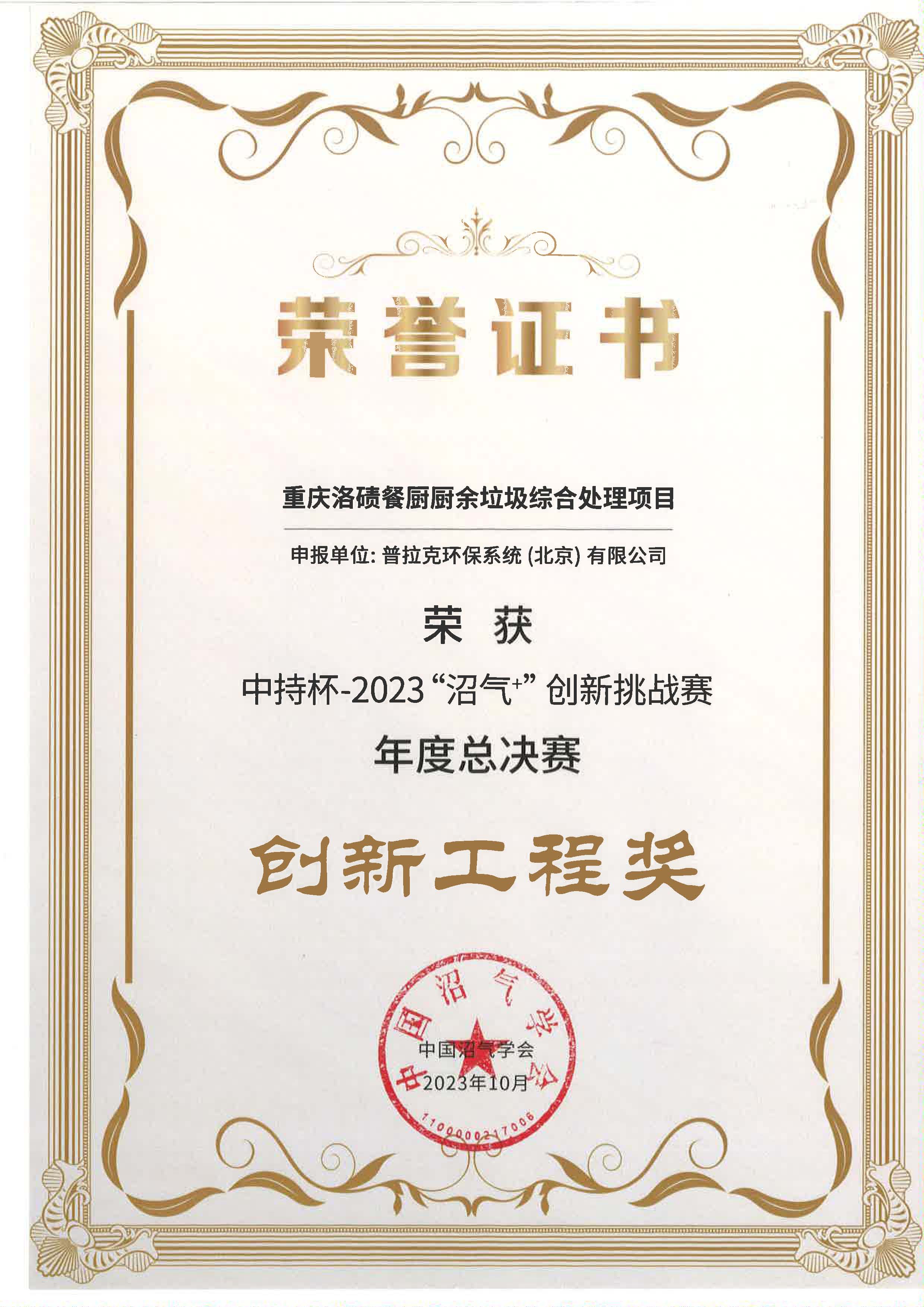 普拉克重庆洛碛项目荣获2023“沼气+”创新挑战赛年度总决赛创新工程奖
